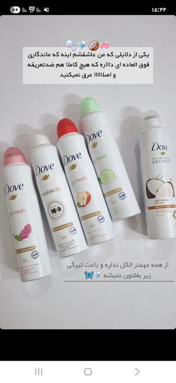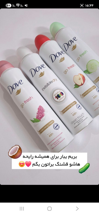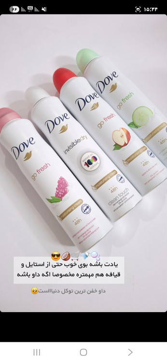 اسپری های داو رو اگه یه بار امتحانشون کنید عاشقشون میشید،چون تا ۴۸ساعت تعریق رو کنترل میکنه و رایحه هاشون موندگاره😍