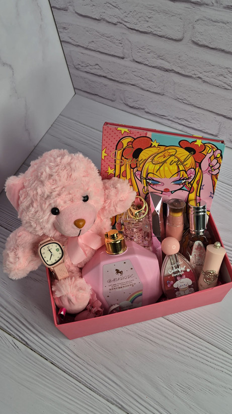 باکس هدیه دخترانه صورتی همراه باباکس و پوشال