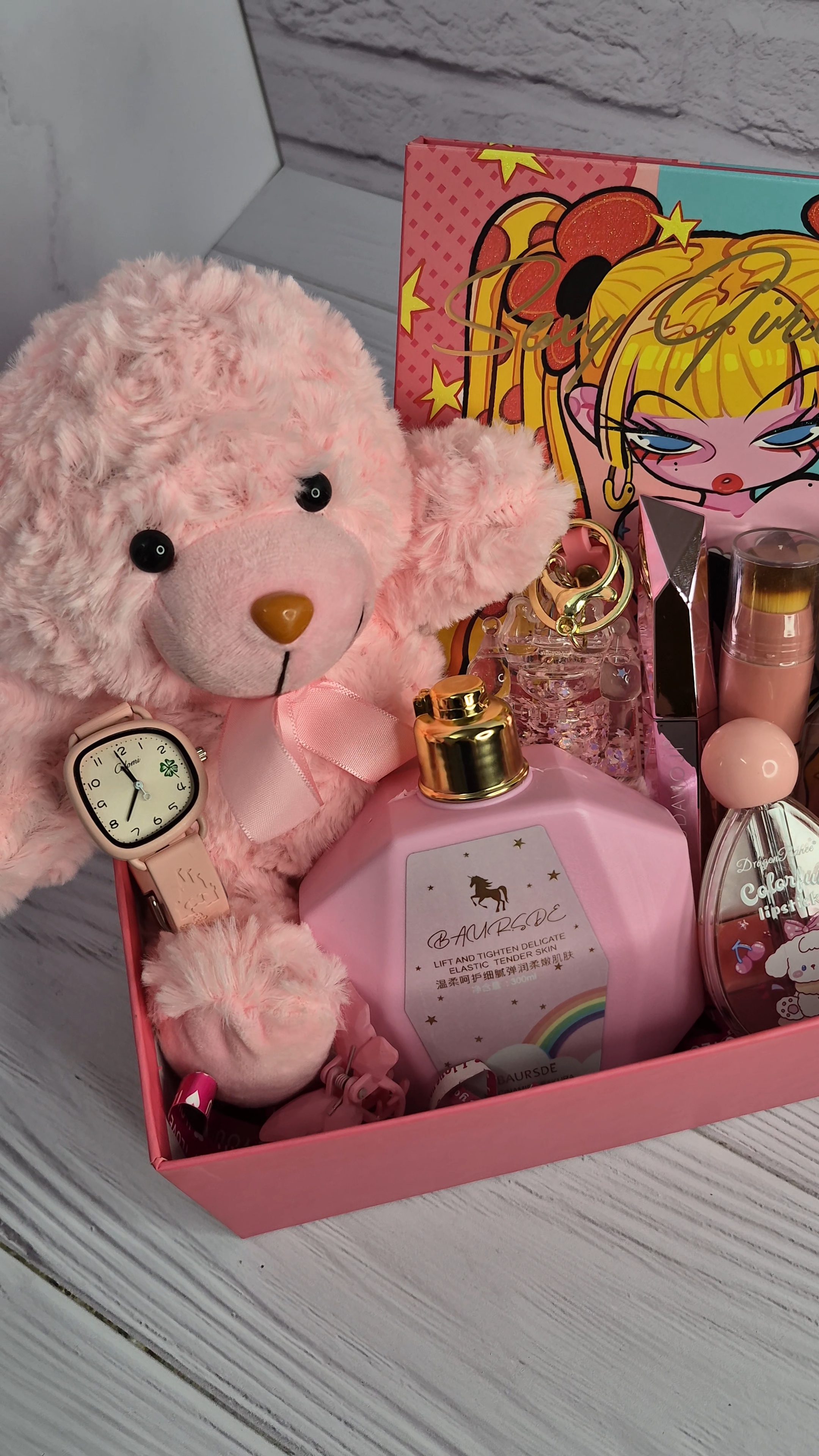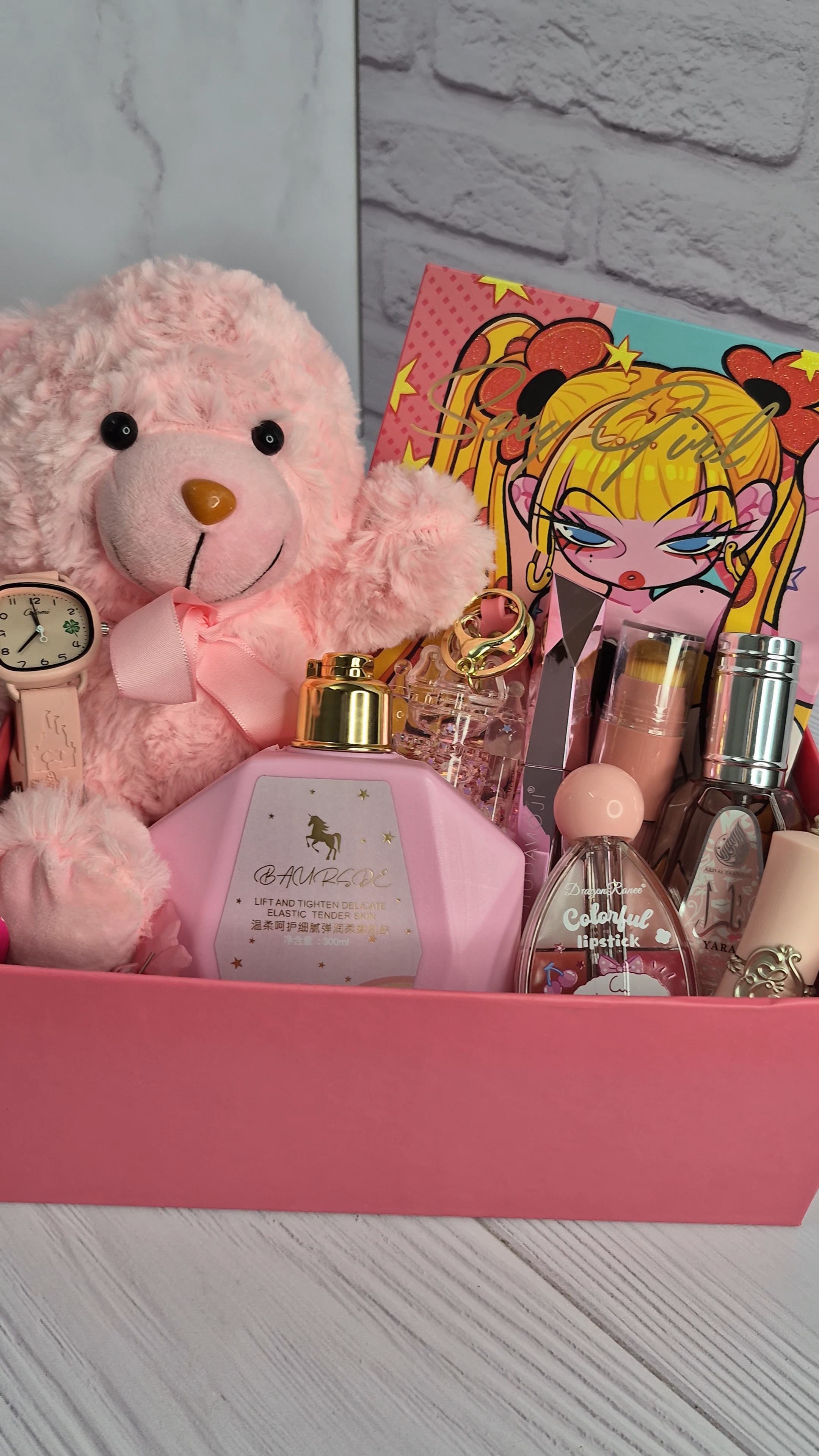 باکس هدیه دخترانه صورتی همراه باباکس و پوشال